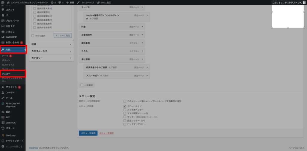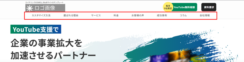 ヘッダーのメニュー