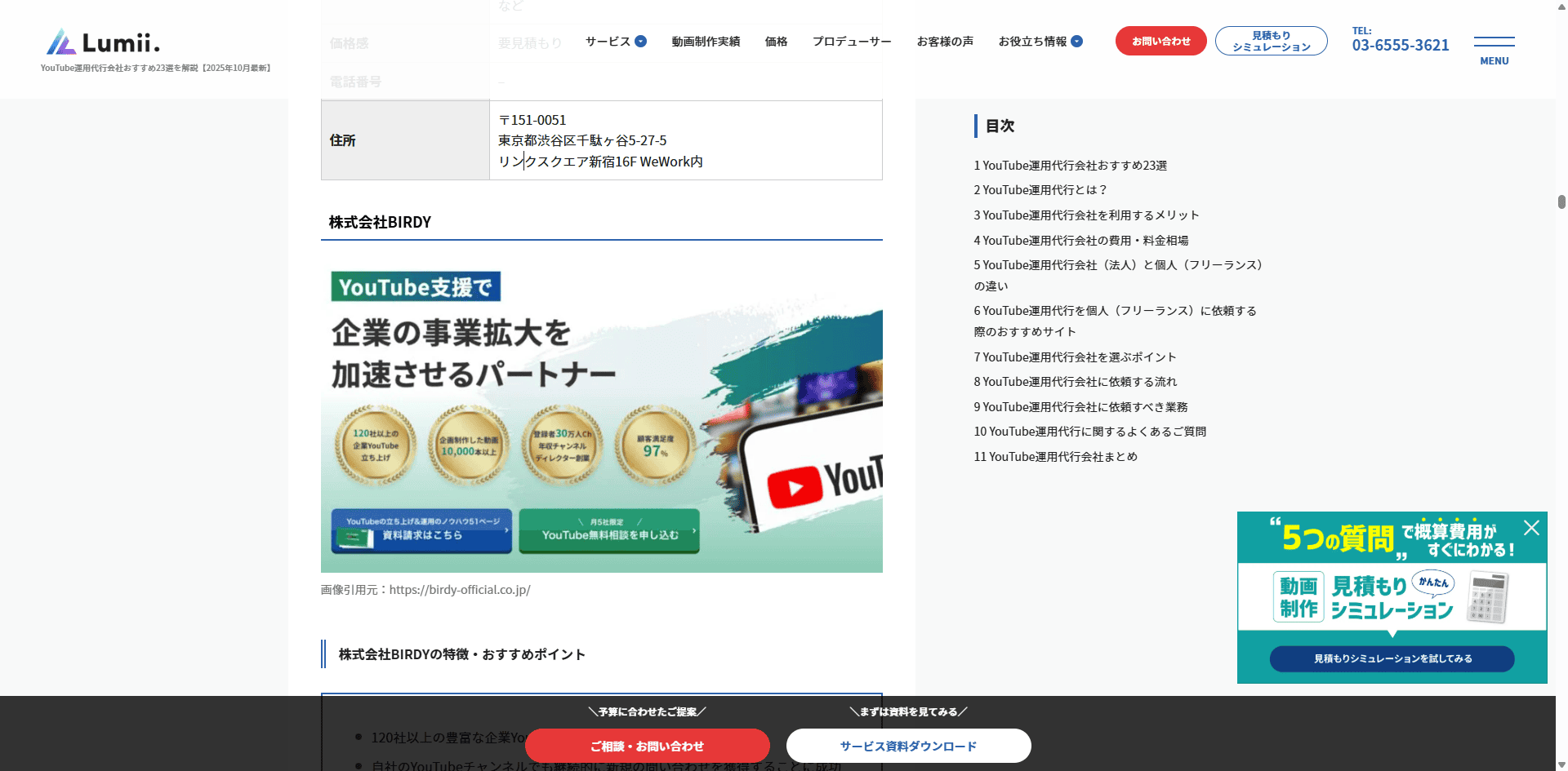 Lumii様のWebサイトにて、株式会社BIRDYがおすすめのYouTube運用代行・コンサルティング会社として紹介されました。