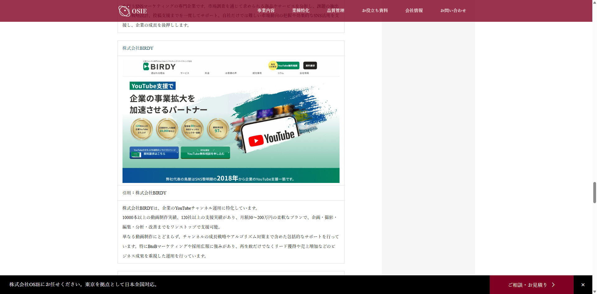 OSIE様のコラム記事にておすすめのSNS運用代行会社として紹介されました。 2025 10/01 メディア掲載 2025年10月1日 株式会社BIRDYが株式会社OSIE様のWebサイトにておすすめのSNS運用代行会社として紹介されました。 掲載記事はこちら▼【中小企業向け】SNS運用代行会社6選|フォロワー増加の具体的な方法と戦略 メディア掲載 URLをコピーしました!