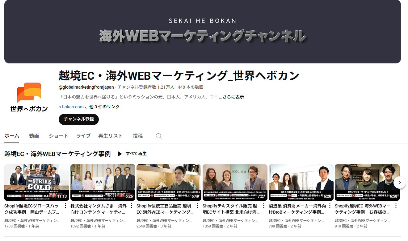 越境EC・海外Webマーケティング支援を専門とする同社は、2020年に企業のYouTubeチャンネル「越境EC・海外WEBマーケティング_世界へボカン」を開設。