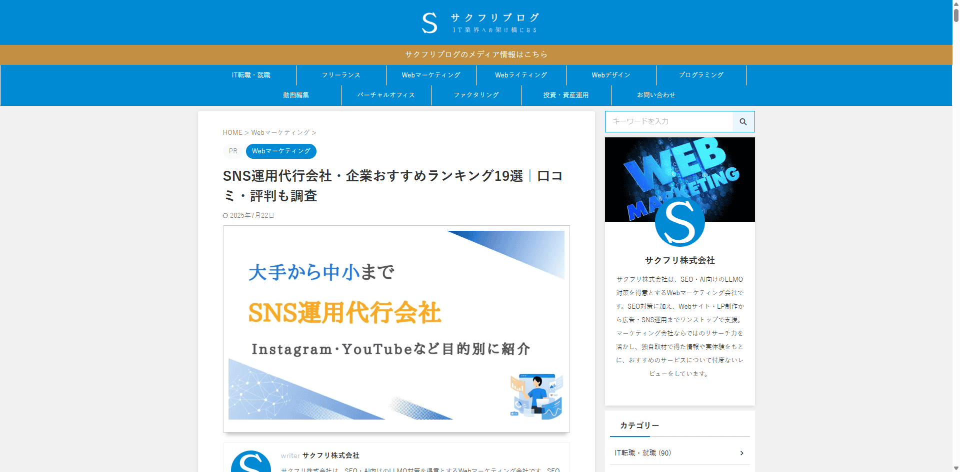 『サクフリブログ』は、サクフリ株式会社のオウンドメディアで、「IT業界への架け橋になる」というテーマで、Webスキルの習得方法、その後の「IT業界への転職」や「フリーランスへの独立」方法を発信しています。