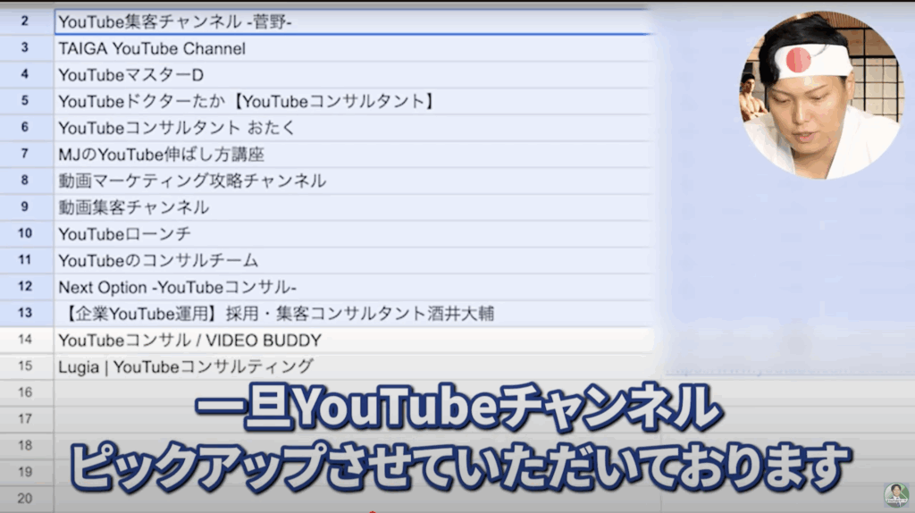 10パターンほどのキーワードを試せば、網羅的に競合チャンネルをリスト化できます。