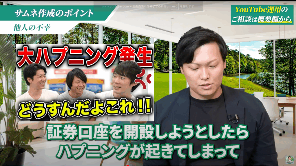 これは、証券口座を開設しようとした際にトラブルが起きた動画のサムネイルです。