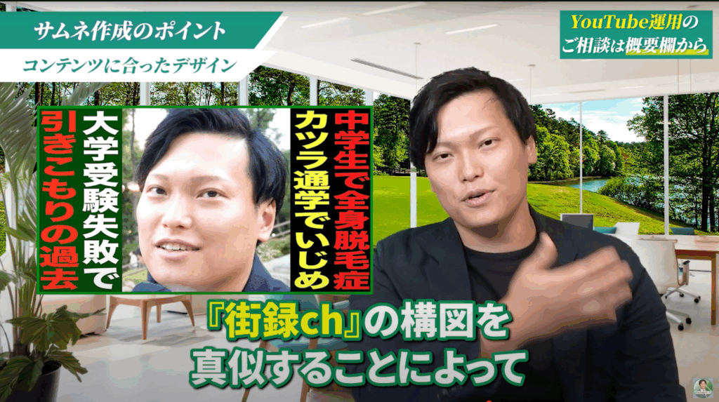 たとえば、「街録ch〜あなたの人生、教えて下さい〜」のようにすでに成果を出しているサムネイルデザインを参考にするのは非常に有効です。